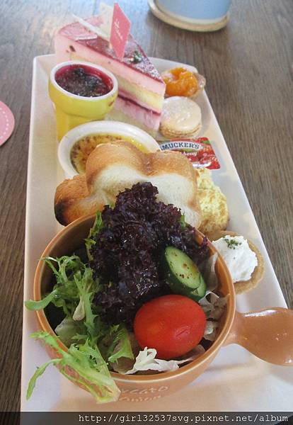 愛麗絲英式下午茶裡面有沙拉、鹹點和甜點。