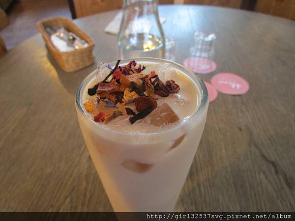 飲料部分,我喝的是玫瑰鹽奶茶,上面有一層玫瑰花瓣,看上去賞心悅目,喝起來的話,味道則微微偏甜(已請店員降低甜度),因此不愛喝甜的人,可能要注意一下。