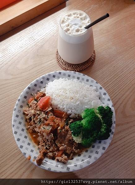 當日餐點:泰式打拋豬肉飯、英式鮮奶茶和生乳酪
