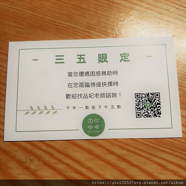 5. 上網爬文時,發現由你咖啡 Union Kaffe有三、五限定的占卜服務,覺得是個亮點!(原本的占卜服務是免費的,但目前已改成付費諮詢,所以我也就沒親身體驗了,有興趣的人,可以參考下方名片的QR Code或是擇日前往由你咖啡 Union Kaffe唷~)